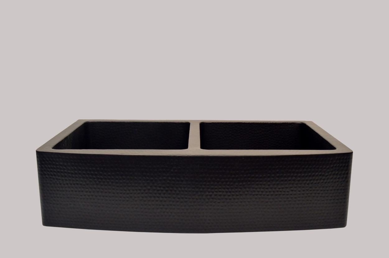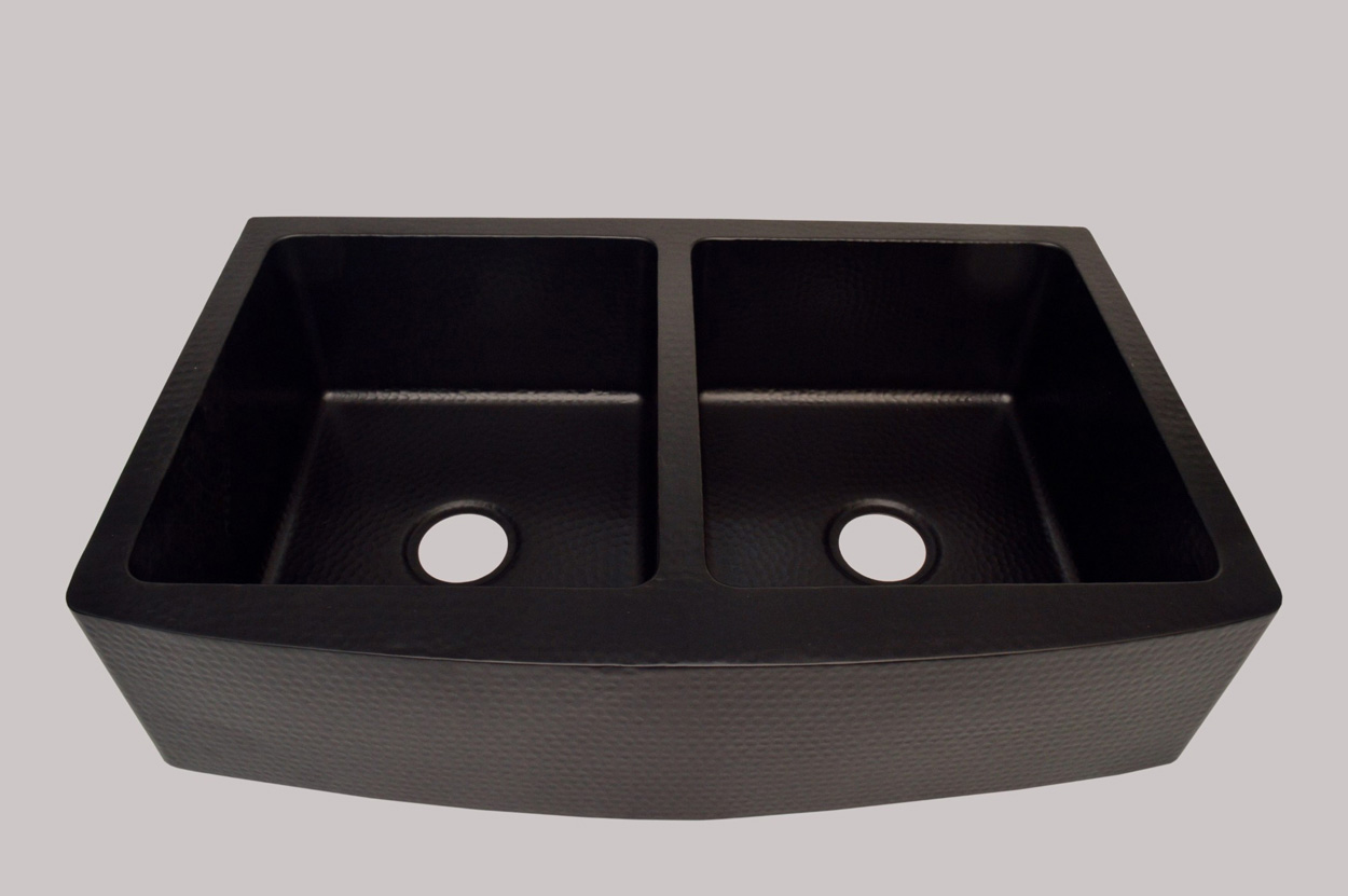 Double Bowl Copper Farmhouse Sink Inside And Outside Hammered And Black Antique