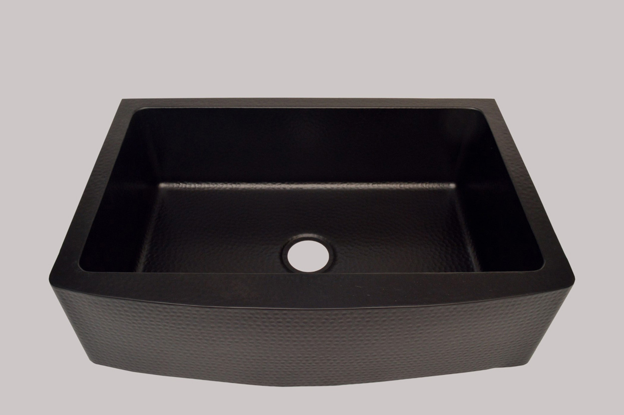 Single Bowl Copper Farmhouse Sink Inside And Outside Hammered And Black Antique